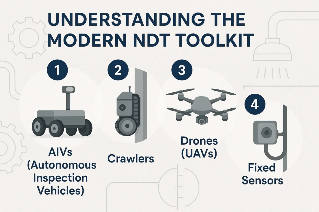 Non-Destructive Testing (NDT) has entered a new era one defined by automation, robotics, and real-time data intelligence. Traditional manual surveys still matter, yet modern inspection teams now rely on a diverse toolkit of AIVs, crawlers, drones, and fixed sensors.